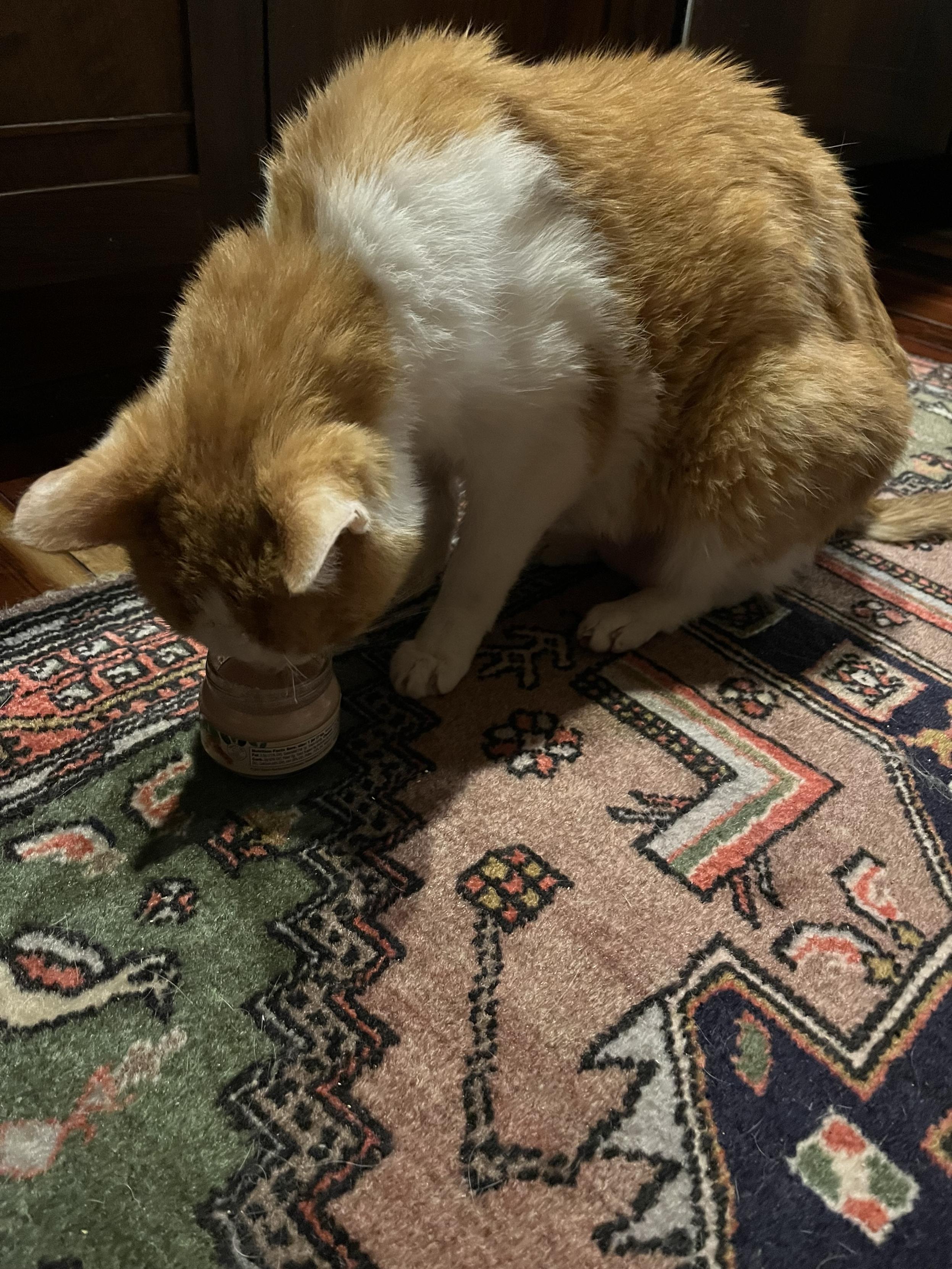 She hasn't been here long, but she's turned into the queen-slash-mother of the house. Watching her methodically clean his face while he just accepts it with that resigned cat expression is pretty heartwarming. Especially given all the medical adventures Catsby's been through this year.